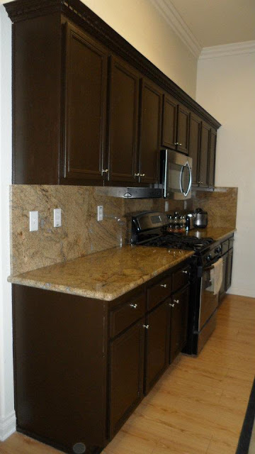 Refinished kitchen cabinets, new appliances